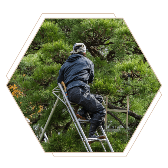 お客様のお宅へご訪問し、樹木の形を整えたり、風通しを良くしたり、手入れをします。